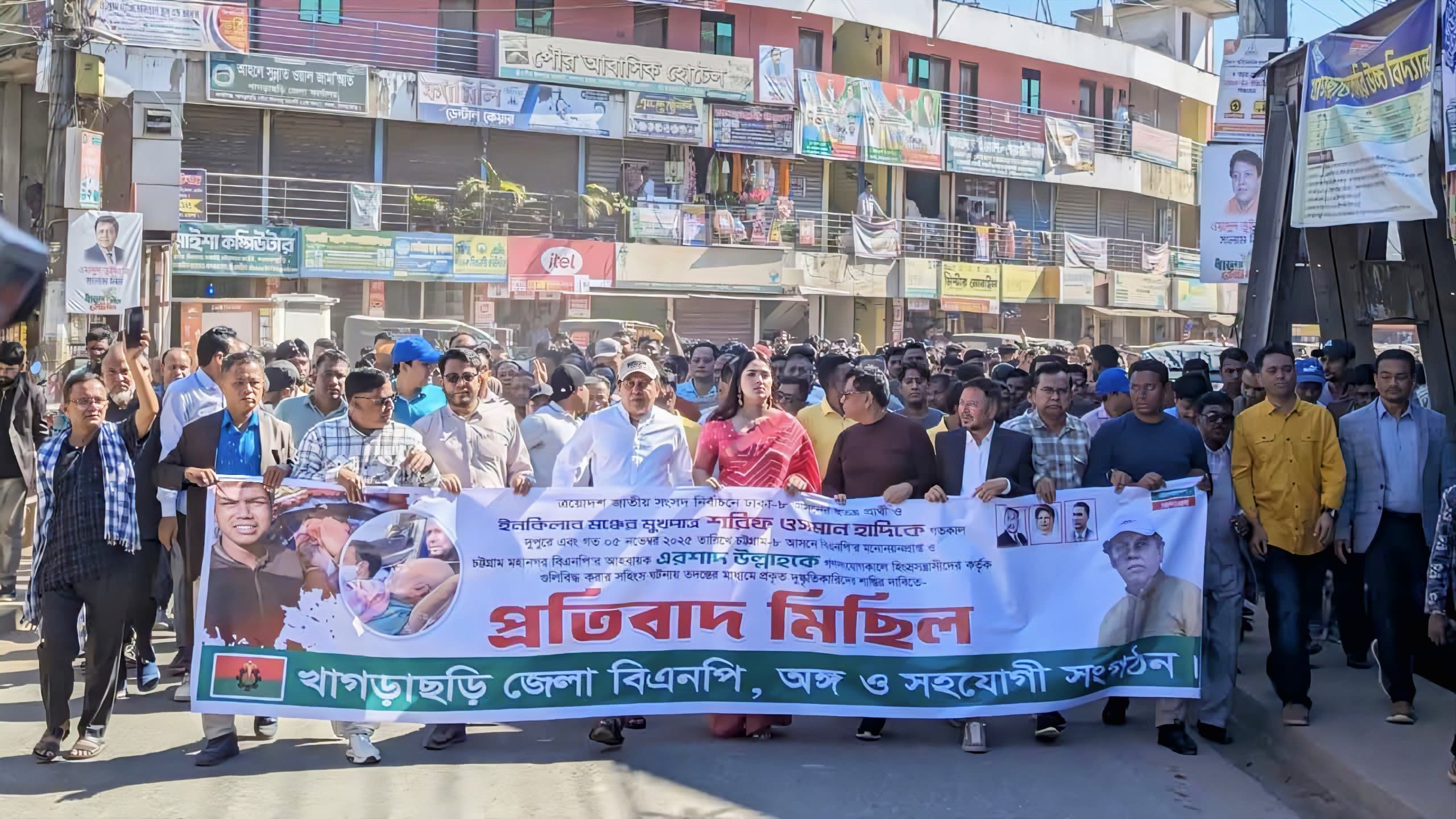 ওসমান হাদির উপর গুলির ঘটনার প্রতিবাদে খাগড়াছড়িতে জেলা বিএনপির মিছিল