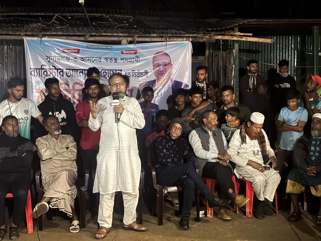 শান্তিগঞ্জ প্রতিনিধি: শান্তিগঞ্জের পাথারিয়া গ্রামে সুনামগঞ্জ–৩ আসনের স্বতন্ত্র প্রার্থী ব্যারিস্টার আনোয়ার হোসেনকে কেন্দ্র করে উঠান বৈঠক ও মতবিনিময় সভা অনুষ্ঠিত