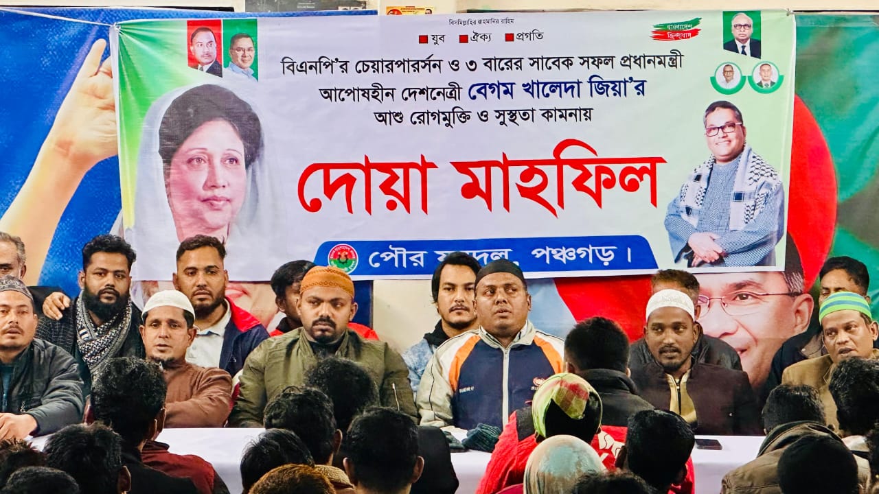 দেশনেত্রী বেগম খালেদা জিয়ার সুস্থতা কামনায় পঞ্চগড় পৌর যুবদলের দোয়া মাহফিল অনুষ্ঠিত