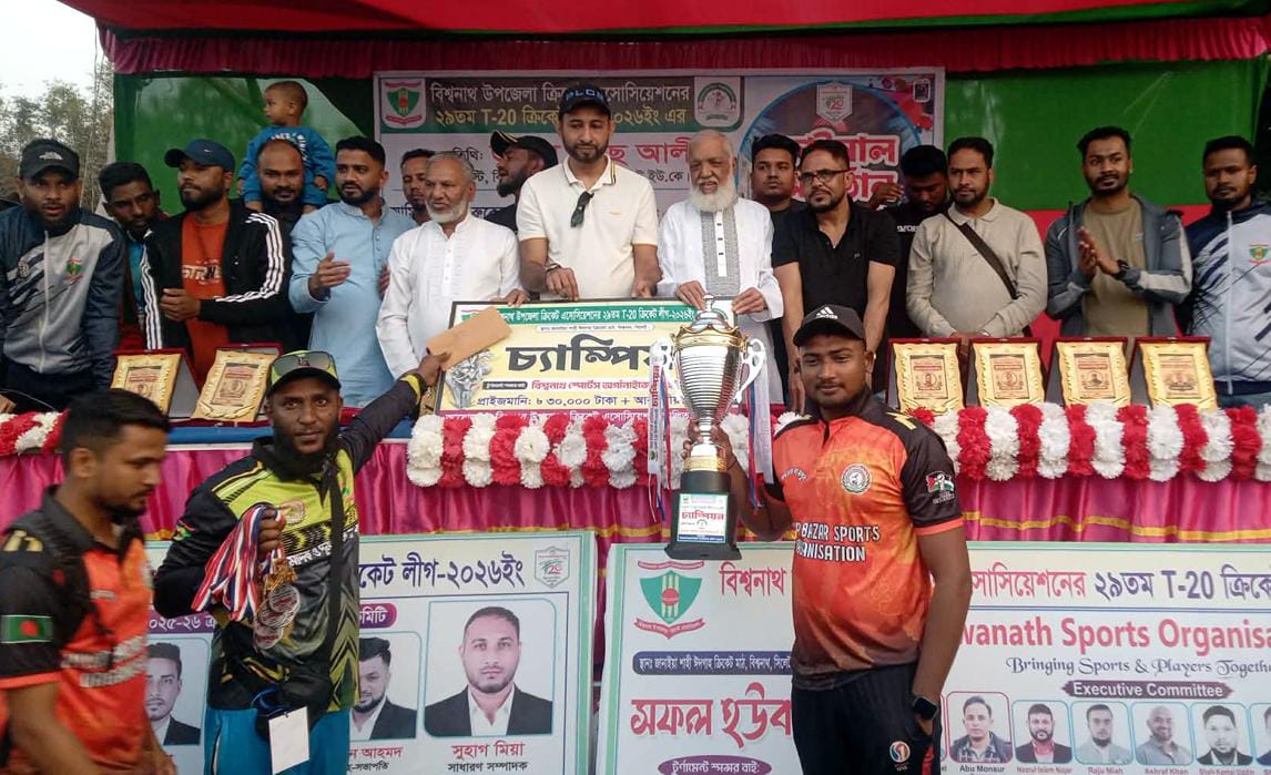 বিশ্বনাথ উপজেলা ক্রিকেট এসোসিয়েশনের ২৯তম টি-২০ ক্রিকেট লীগে শিরোপা জয় ‘মিয়ারবাজারের’