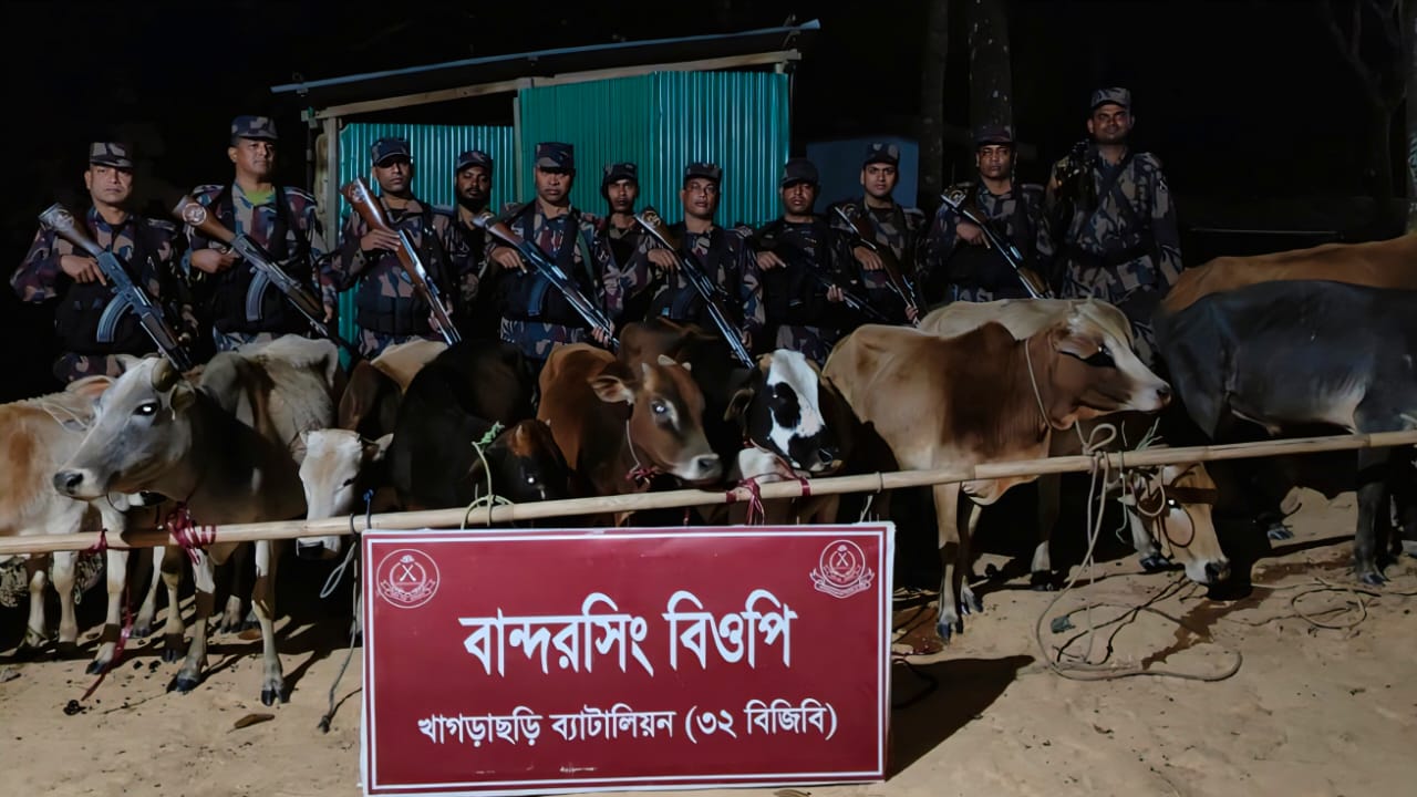 খাগড়াছড়িতে ৩২ বিজিবির অভিযানে ১২টি ভারতীয় গরু জব্দ