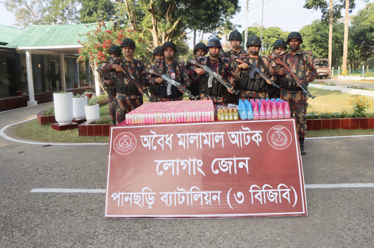 পানছড়িতে বিজিবির বিশেষ অভিযানে ভারতীয় চোরাচালানী মালামাল জব্দ